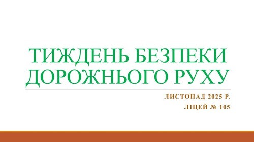 З 10 по 16 листопада з метою попередження дитячого дорожньо-транспортного травматизму серед здобувачів освіти закладу, активізації освітнього процесу щодо розвитку знань учнів з Правил дорожнього руху, прищеплення дітям стійких навичок безпечної поведінки на дорогах та вулицях міста, з урахуванням воєнного стану в Ліцеї №105 було проведено Тиждень безпеки дорожнього руху